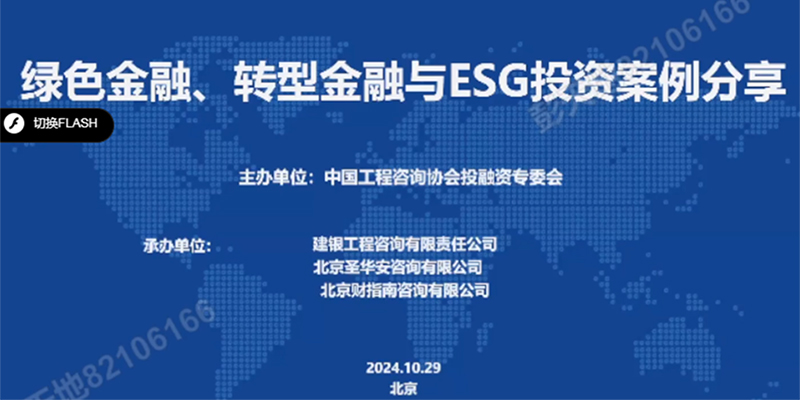 2024-10-2914267 次2024年10月29日下午2:30,由中国工程咨询协会投融资专委会主办,由建银工程咨询有限责任公司、北京圣华安咨询有限公司和北京财指南咨询有限公司承办的《绿色金融、转型金融与E…